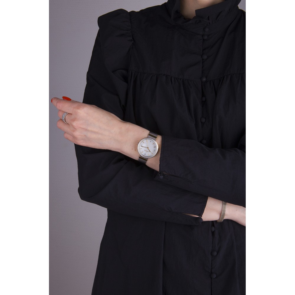 Šifra: 26793 Pol: Ženski Tip mašine: Quartz Staklo: Mineralno Prečnik kućišta: 35mm Boja cifera: Sedefasta bijela Boja narukvice: Srebrna Vodootpornost: 3ATM Garancija: 2 godine