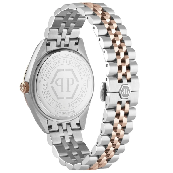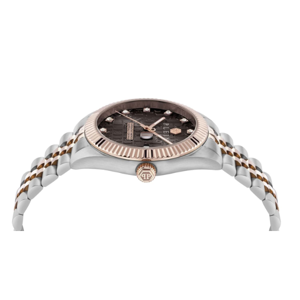 Šifra: 37571 Pol: Unisex Tip mašine: Quartz Staklo: Mineralno Prečnik kućišta: 41mm Boja cifera: Braon Boja narukvice: Bicolor Vodootpornost: 5ATM Garancija: 2 godine
