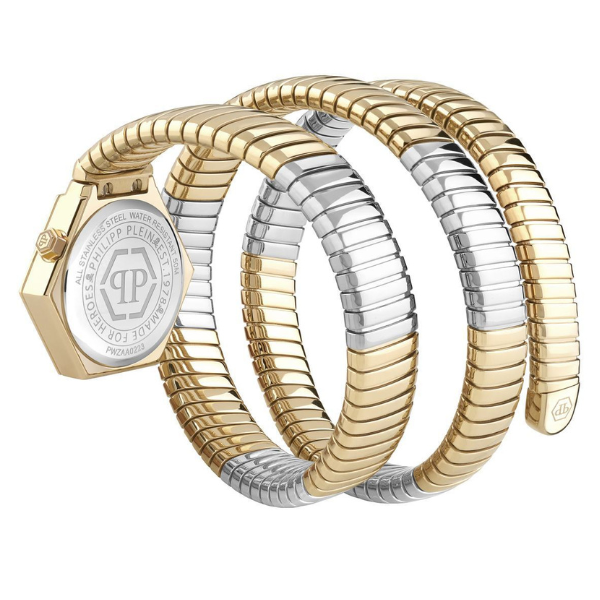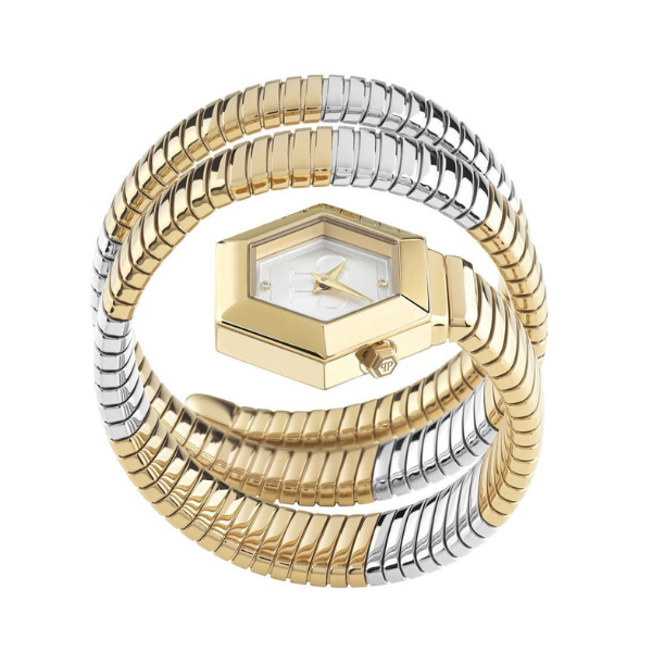 Šifra: 27368 Pol: Ženski Tip mašine: Quartz Staklo: Hardened mineral glass Prečnik kućišta: 24mm Boja narukvice: Bicolor Vodootpornost: 5ATM Garancija: 2 godine