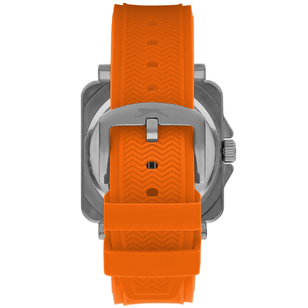 Šifra: 29627 Pol: Muški Tip mašine: Quartz Prečnik kućišta: 43mm Boja cifera: Siva Boja narukvice: Narandžasta Vodootpornost: 3 ATM Garancija: 2 godine