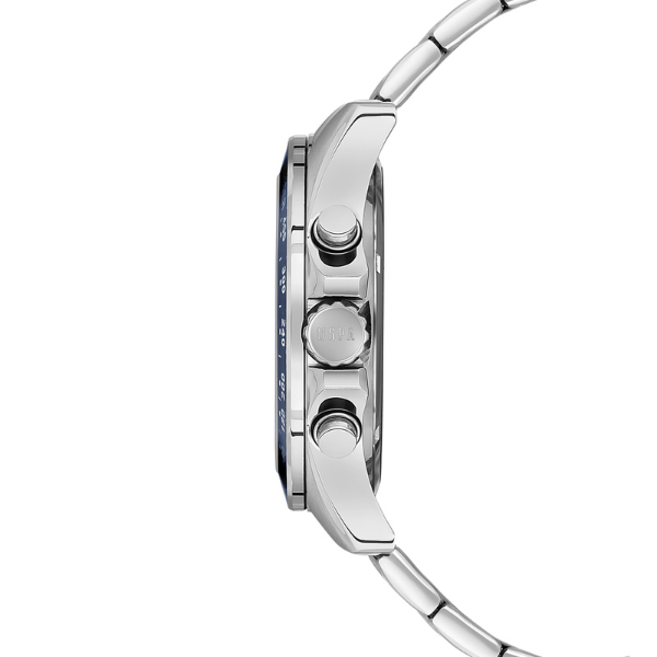 Šifra: 27244 Pol: Muški mašine: Quartz Staklo: Mineralno Prečnik kućišta: 46mm Boja cifera: Plava Boja narukvice: Srebrna Vodootpornost: 5ATM Garancija: 2 godine