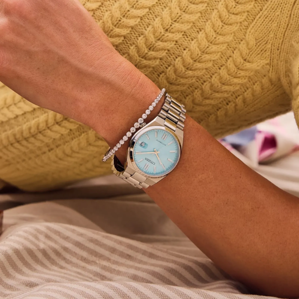 Šifra: 38501 Pol: Unisex Tip mašine: Automatic Staklo: Anti-reflektivno safirno staklo Prečnik kućišta: 37mm Boja narukvice: Srebrna Boja cifera: Tifanny plava Vodootpornost: 3ATM Garancija: 2 godine