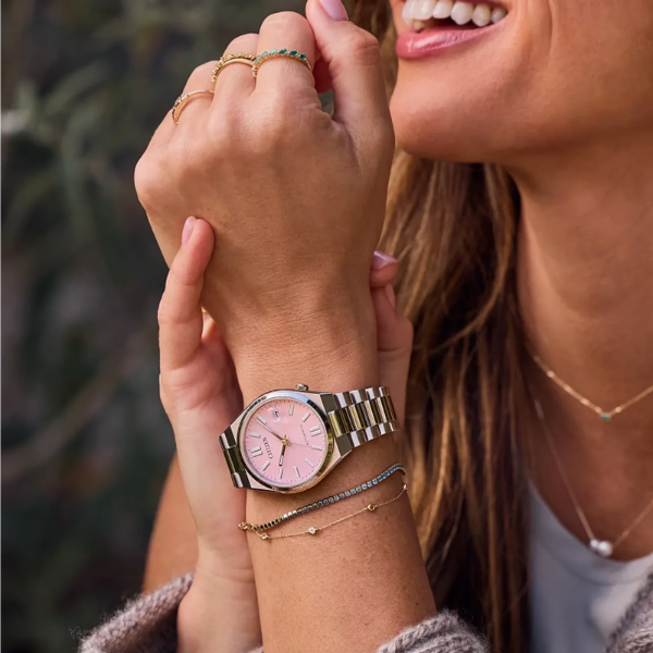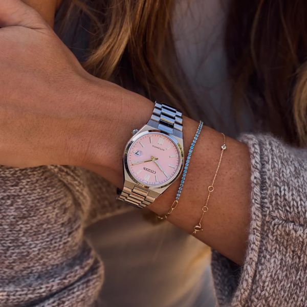 Šifra: 38499 Pol: Unisex Tip mašine: Automatic Staklo: Anti-reflektivno safirno staklo Prečnik kućišta: 37mm Boja narukvice: Srebrna Boja cifera: Roza Vodootpornost: 3ATM Garancija: 2 godine