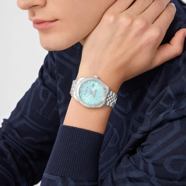 Šifra: 37578 Pol: Unisex Tip mašine: Quartz Staklo: Mineralno Prečnik kućišta: 41mm Boja cifera: Tifani plava Boja narukvice: Srebrna Vodootpornost: 5ATM Garancija: 2 godine