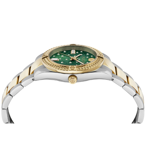 Šifra: 42255 Pol: Ženski Tip mašine: Quartz Staklo: Mineralno Prečnik kućišta: 36 mm Boja cifera: Zelena Boja narukvice: Srebrna/ Zlatna Vodootpornost: 5 ATM Garancija: 2 godine