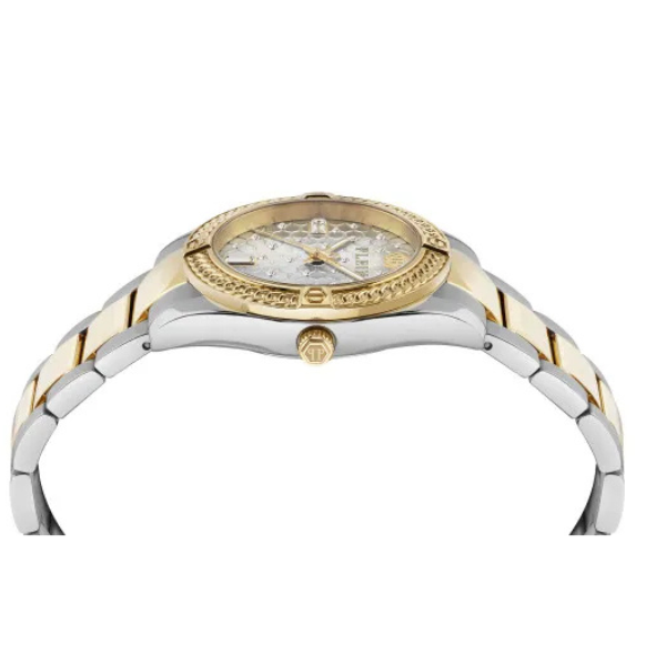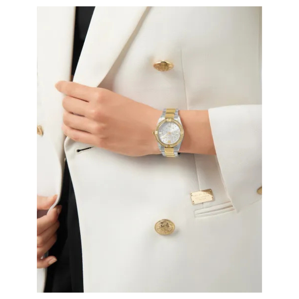 Šifra: 42248 Pol: Ženski Tip mašine: Quartz Staklo: Mineralno Prečnik kućišta: 36 mm Boja cifera: Srebrna Boja narukvice: Srebrna/ Zlatna Vodootpornost: 5 ATM Garancija: 2 godine