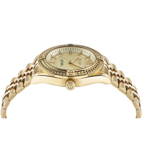 Pol: Muški Tip mašine: Quartz Staklo: Mineralno Prečnik kućišta: 43 mm Boja cifera: Zlatna Boja narukvice: Zlatna Vodootpornost: 5ATM Garancija: 2 godine